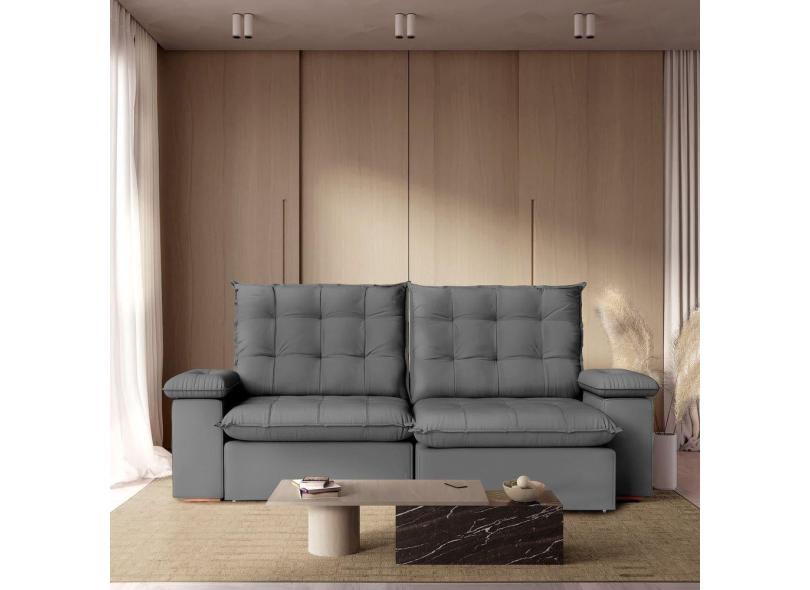 Sofá Retrátil e Reclinável 190cm Veludo Molas Ensacadas Luxor Cinza