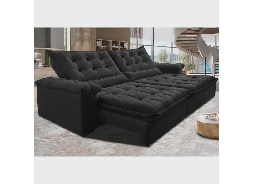Sofá Retrátil e Reclinável 2,15m Cama inBox Big Fresh com SoftGel D40 Velupluma Preto