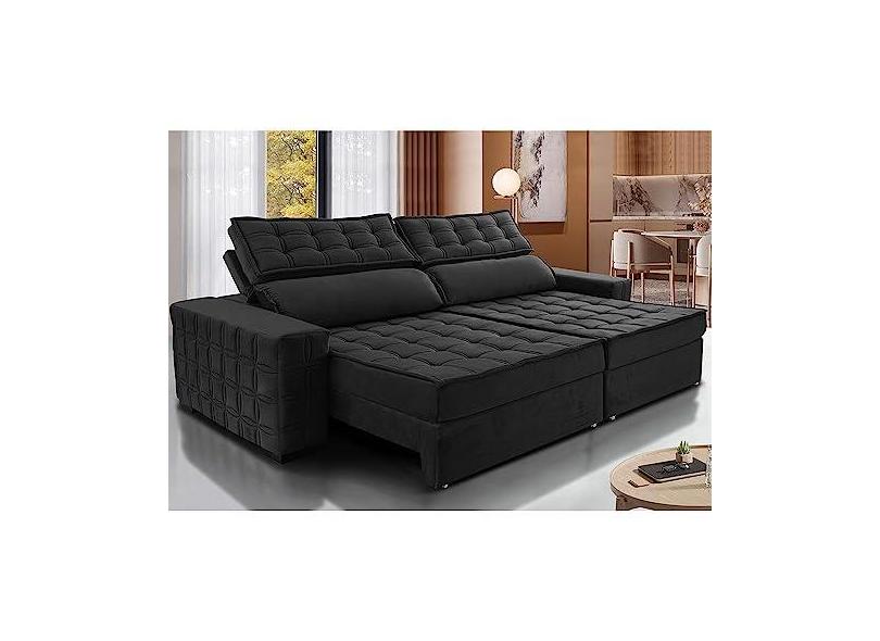 Sofá Retrátil e Reclinável 2,15m Cama Inbox Big Star com Softgeld40 Velupluma Preto