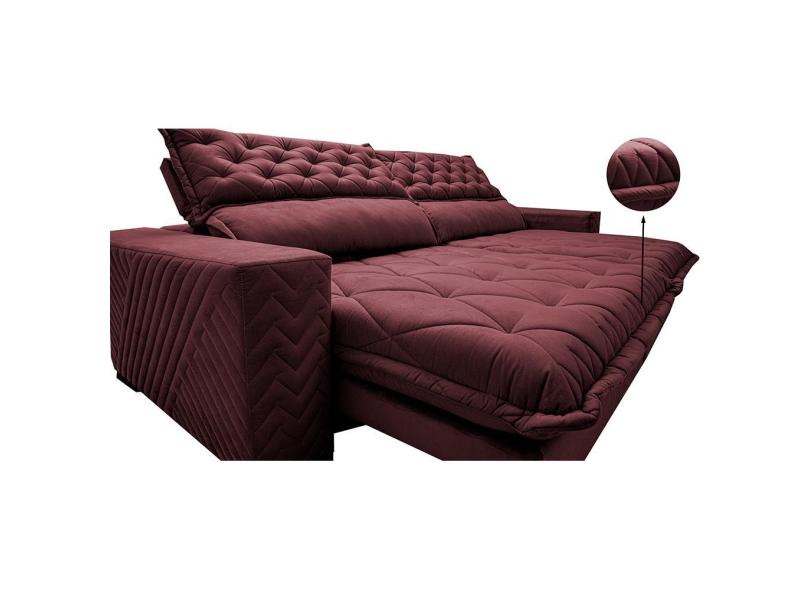 Sofá Retrátil E Reclinável 2,15M Molas Ensacadas Cama Inbox Spazus Com Bordado 3D Velusoft Vinho