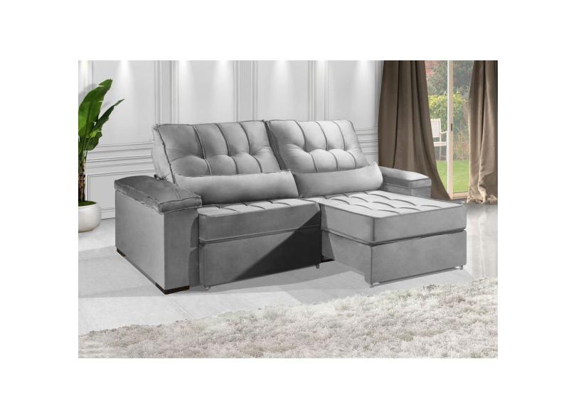 Sofá Retrátil e Reclinável 2.20m ESTILO ESTOFADOS - MOSCOU com SoftGel D33 "Prata"
