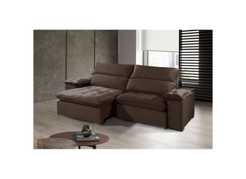 Sofá Retrátil e Reclinável 2.20m ESTILO ESTOFADOS - OSLO com SoftGel D33 Velusoft "Marrom"