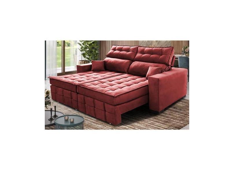 Sofá Retrátil e Reclinável 2,20m Molas Ensacadas e Costura Tripla Cama Inbox Japão Velusoft Vermelho