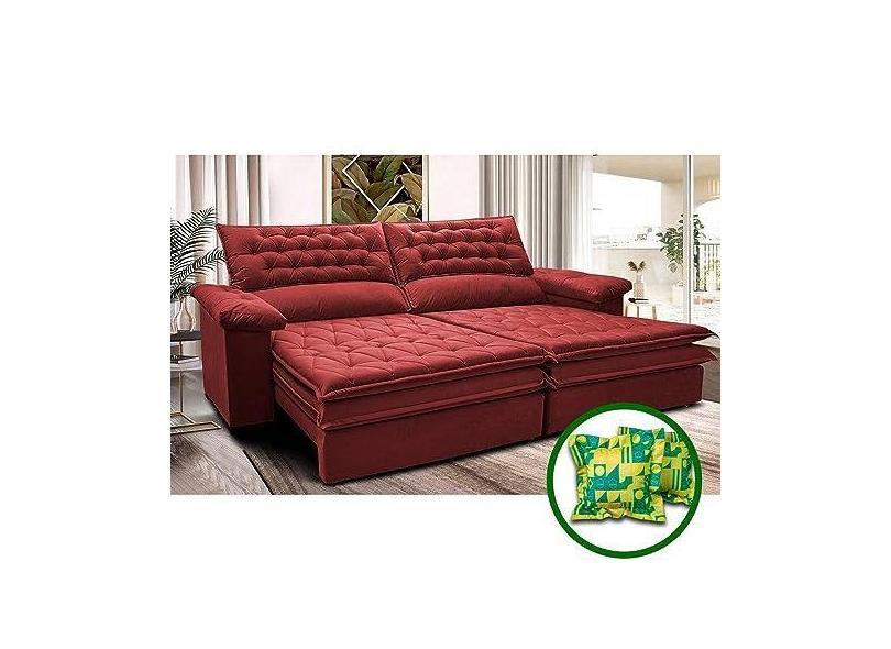 O menor preço encontrado no Brasil para Sofá Retrátil e Reclinável 2,32m Molas Ensacadas Cama Inbox Alemanha Viscoelástico Velusoft Vermelho atualmente é R$ 3.140,70.