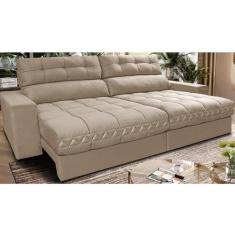 Sofá Retrátil e Reclinável 2,32m Molas Ensacadas Cama Inbox Brasil Velusoft Bege