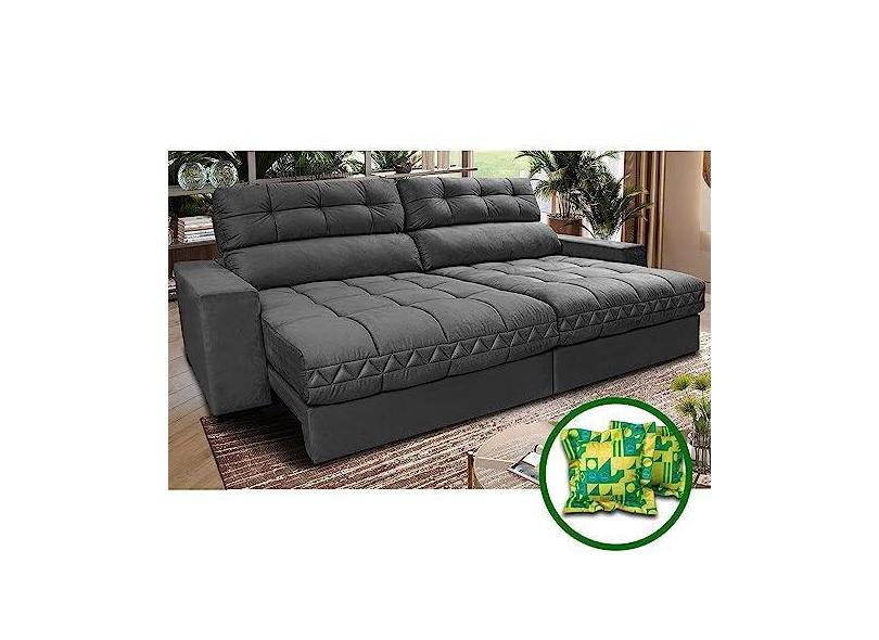 O menor preço encontrado no Brasil para Sofá Retrátil e Reclinável 2,32m Molas Ensacadas Cama Inbox Brasil Velusoft Cinza atualmente é R$ 3.161,50.