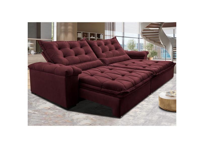 Sofá Retrátil E Reclinável 2,35M Cama Inbox Big Fresh Com Softgel D40 Velupluma Vinho