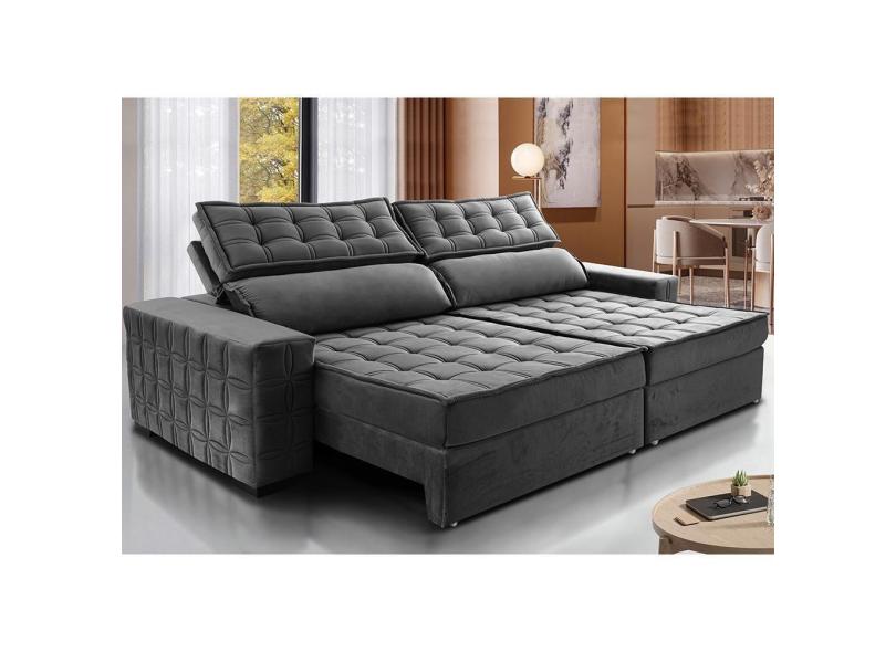 Sofá Retrátil E Reclinável 2,35M Cama Inbox Big Star Com Softgel D40 Velupluma Cinza