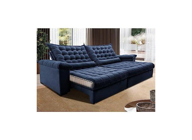 O menor preço encontrado no Brasil para Sofá Retrátil e Reclinável 2,35m Molas Ensacadas Cama Inbox Big Space com Bordado 3d Velusoft Azul atualmente é R$ 2.979,00.