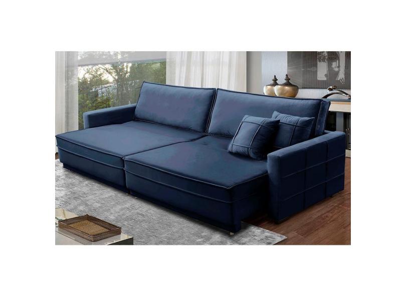 Sofá Retrátil e Reclinável 2,50m Karina Veludo Azul Madelina Decor