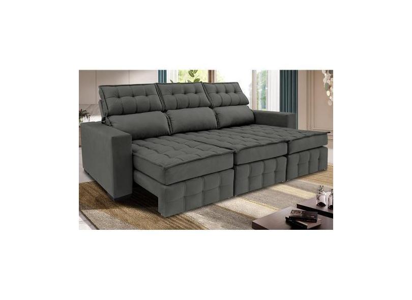 Sofá Retrátil E Reclinável 2,50M Molas Ensacadas E Costura Tripla Cama