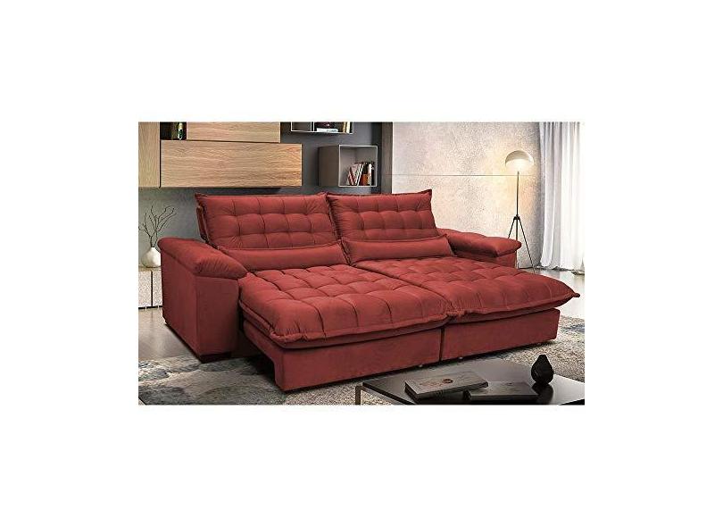 Sofá Retrátil e Reclinável 2,52m com Molas Ensacadas Cama Inbox Aconchego Tecido Suede Vermelho
