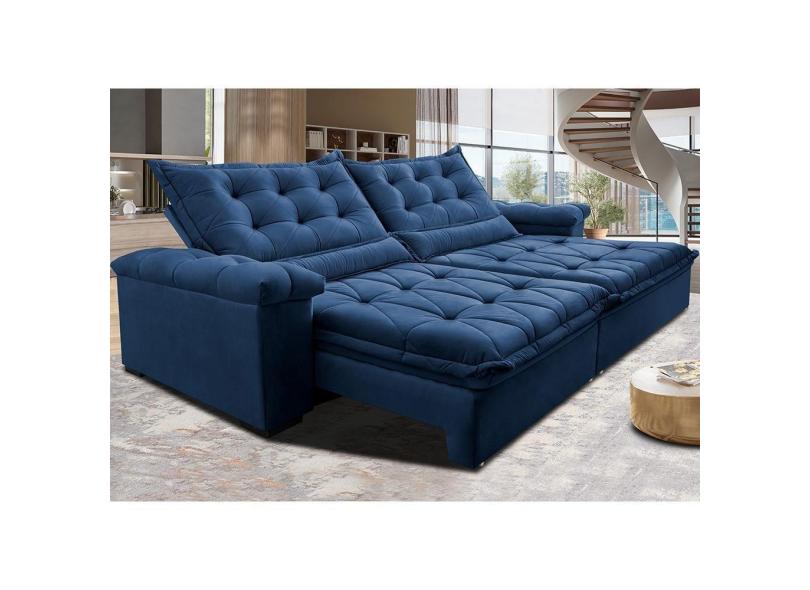 Sofá Retrátil E Reclinável 2,55M Cama Inbox Big Fresh Com Softgel D40 Velupluma Azul