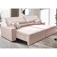 Sofá Retrátil e Reclinável 2,55m Império com Molas Cama Inbox Linho Bege Claro
