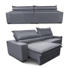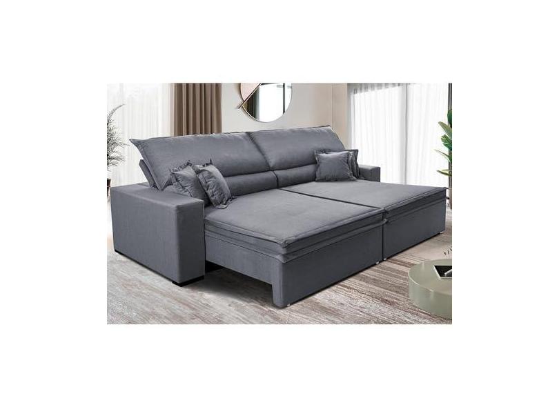 Sofá Retrátil e Reclinável 2,55m Império com Molas Cama Inbox Linho Cinza Escuro