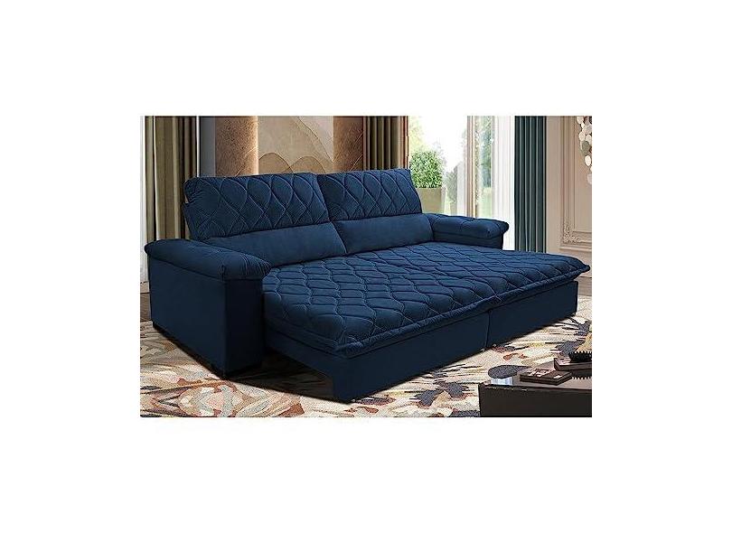 O menor preço encontrado no Brasil para Sofá Retrátil e Reclinável 2,55m Molas Ensacadas Cama Inbox Big Home com Bordado 3d Velusoft Azul atualmente é R$ 4.439,00.