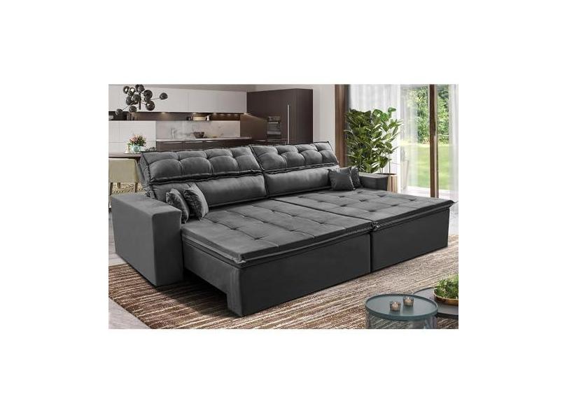 Sofá Retrátil e Reclinável 2,72m Luxos Cama Inbox Velusoft Cinza