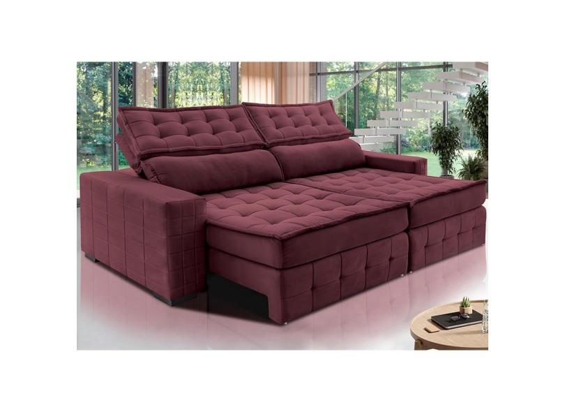 Sofá Retrátil e Reclinável 2,75m Cama inBox Big Puffer com SoftGel D40 Velupluma Vinho