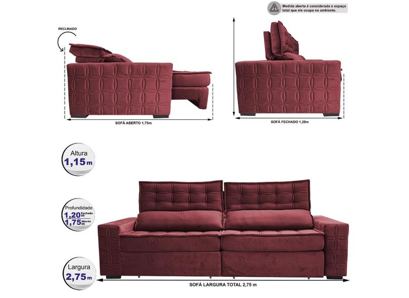 Sofá Retrátil e Reclinável 2,75m Cama inBox Big Star com SoftGel D40 Velupluma Vinho