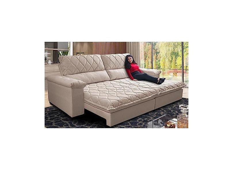 O menor preço encontrado no Brasil para Sofá Retrátil e Reclinável 2,75m Molas Ensacadas Cama Inbox Big Home Bordado 3d Linho Bege Claro atualmente é R$ 3.679,00.