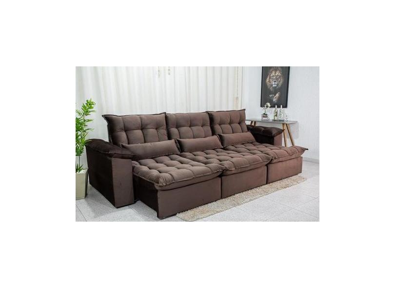 Sofá Retrátil E Reclinável 2,90M Em Tecido Veludo C/ Pillow Nos Braços