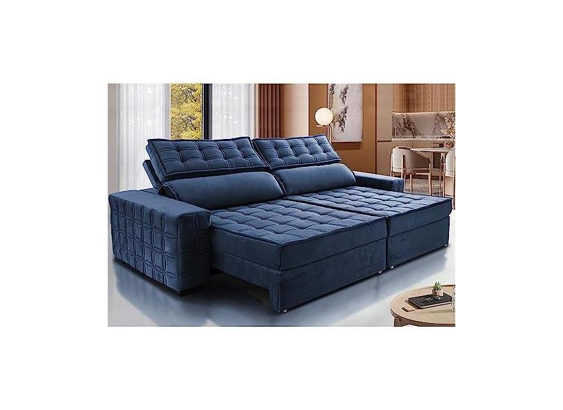 Sofá Retrátil e Reclinável 2,95m Cama Inbox Big Star com Softgeld40 Velupluma Azul