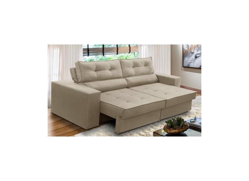 Sofá Retrátil E Reclinável 2 Lugares 1,90M Com Molas Mirela Suede Bege