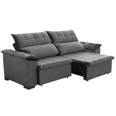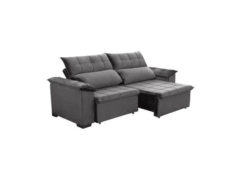 Sofá Retrátil e Reclinável 290 cm Cristal Veludo Cinza Chamby Móveis