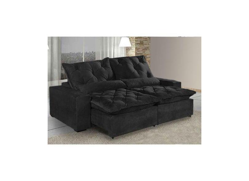 Sofá retrátil e reclinável 2m elegance preto - BONEQUINHA MÓVEIS