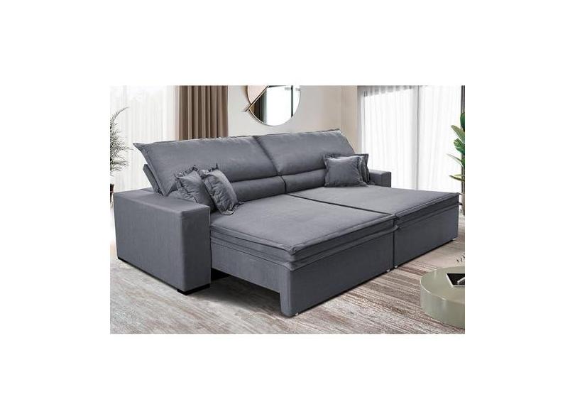 Sofá Retrátil e Reclinável 3,15m Império com Molas Cama Inbox Linho Cinza Escuro