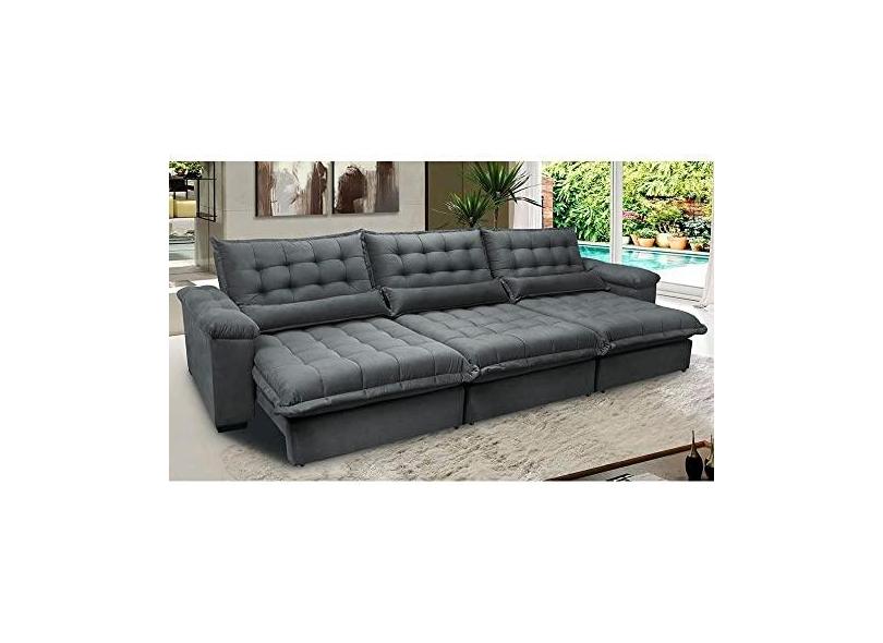 O menor preço encontrado no Brasil para Sofá Retrátil e Reclinável 3,52m com Molas Ensacadas Cama Inbox Aconchego Tecido Velusoft Cinza atualmente é R$ 4.469,00.
