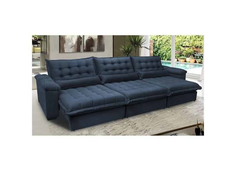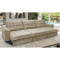 Sofá Retrátil e Reclinável 3,52m com Molas Ensacadas Cama inBox Aconchego. Tecido Velusoft