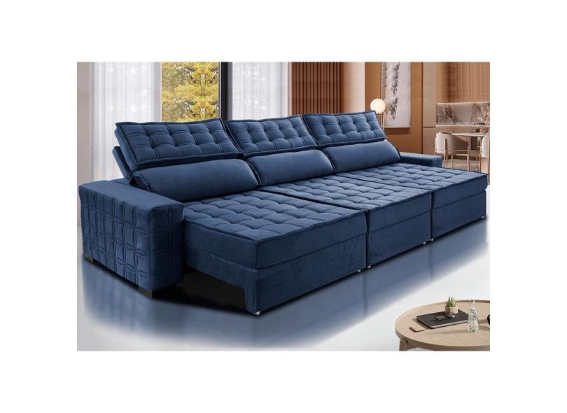 Sofá Retrátil e Reclinável 3,55m Cama inBox Big Star com SoftGel D40 Velupluma Azul