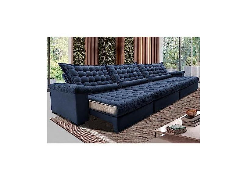 O menor preço encontrado no Brasil para Sofá Retrátil e Reclinável 3,85m Molas Ensacadas Cama Inbox Big Space com Bordado 3d Velusoft Azul atualmente é R$ 4.999,00.