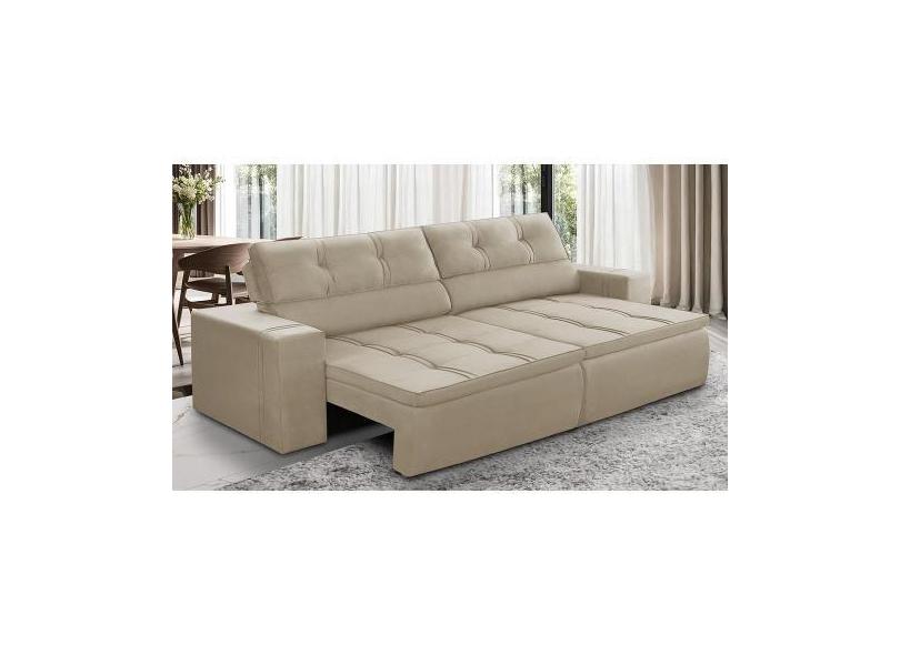 Sofá Retrátil E Reclinável 3 Lugares 1,90M Com Molas Stella Suede Bege