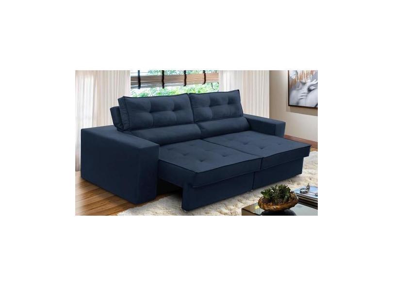 Sofá Retrátil e Reclinável 3 lugares 2,10m com Molas Mirela Suede Azul