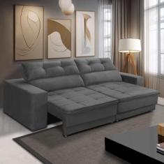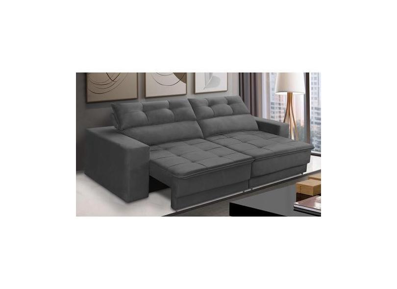 Sofá Retrátil E Reclinável 3 Lugares 2,30M Com Molas Emily Suede Cinza