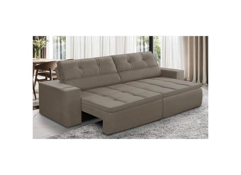 Sofá Retrátil e Reclinável 3 lugares 2,30m com Molas Stella Suede Capuccino Adonai Estofados