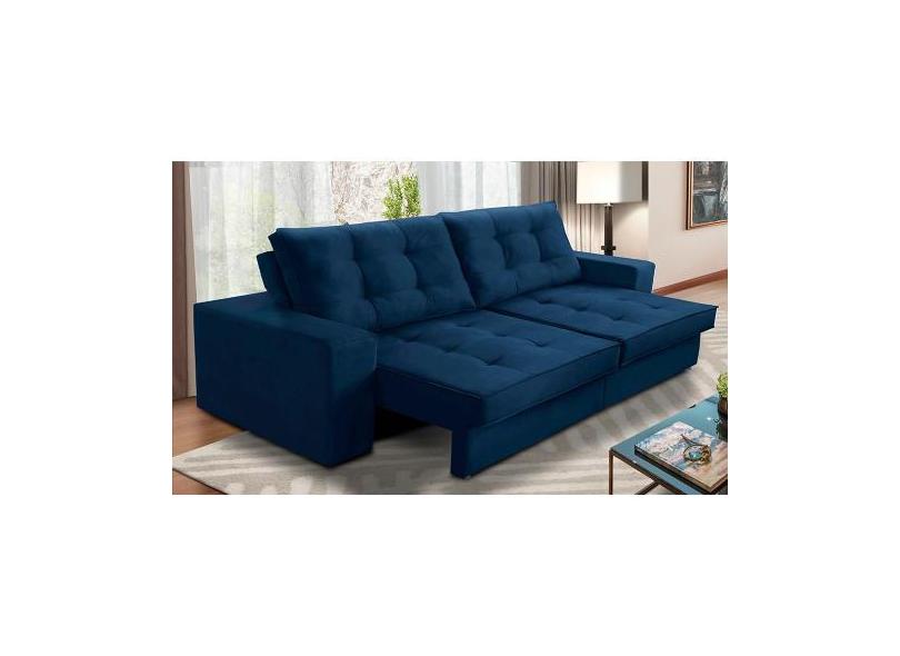 Sofá Retrátil e Reclinável 3 lugares 2,50m com Molas Marcela Suede Azu