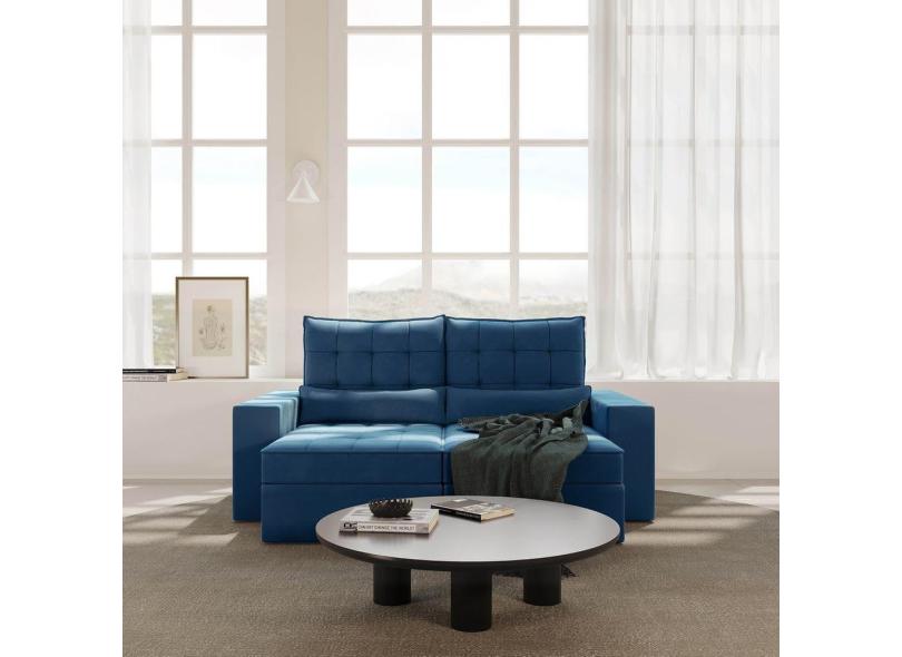 Sofá Retrátil e Reclinável 3 Lugares 210cm Embaúba Extra Cabecasa Madeiramadeira Azul Diamante