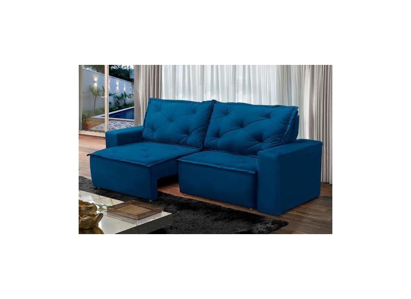 Sofá Retrátil E Reclinável 3 Lugares Com Molas 1,80M Ana Suede Azul Ad