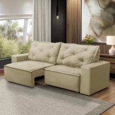 Sofá Retrátil e Reclinável 3 lugares com Molas 1,80m Ana Suede Bege Ad