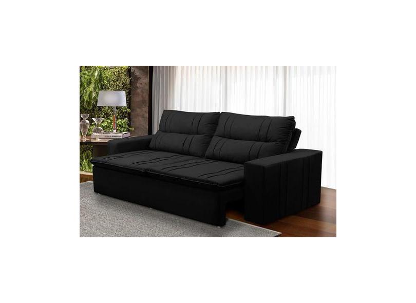Sofá Retrátil e Reclinável 3 lugares com Molas 1,80m Ester Suede Preto