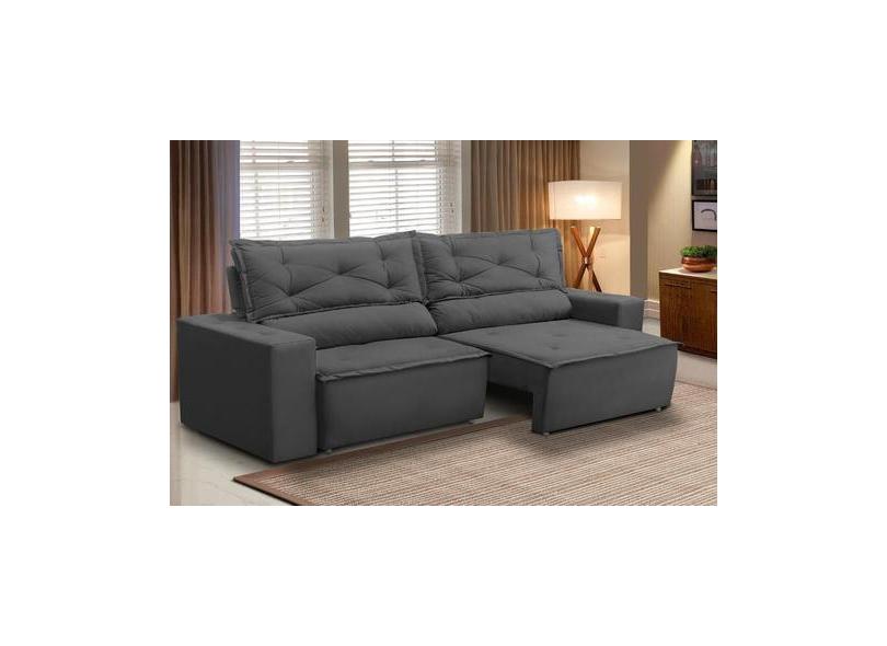 Sofá Retrátil e Reclinável 3 lugares com Molas 1,80m Livia Suede Cinza