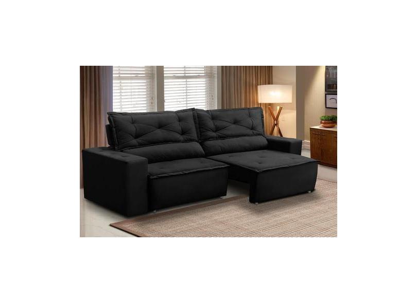 Sofá Retrátil e Reclinável 3 lugares com Molas 1,80m Livia Suede Preto