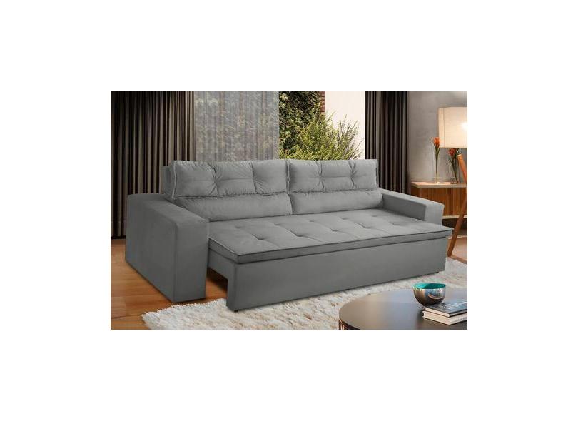Sofá Retrátil E Reclinável 3 Lugares Com Molas 1,80M Vegas Suede Cinza