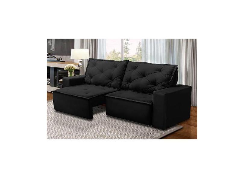 Sofá Retrátil E Reclinável 3 Lugares Com Molas 2,00M Alana Suede Preto
