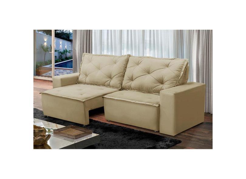 Sofá Retrátil e Reclinável 3 lugares com Molas 2,00m Ana Suede Bege Adonai Estofados