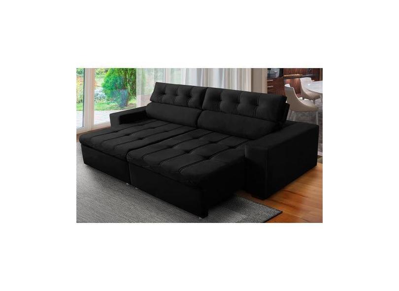 Sofá Retrátil E Reclinável 3 Lugares Com Molas 2,10M Dani Suede Preto