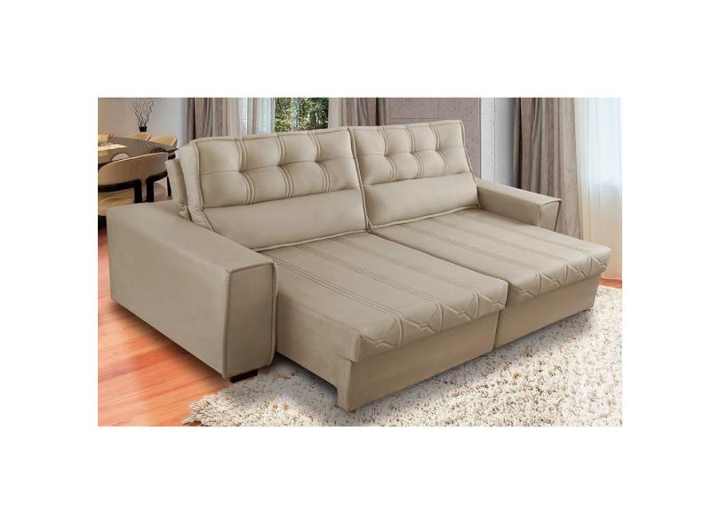 Sofá Retrátil e Reclinável 3 Lugares com Molas 2,30m Camila Suede Bege Adonai Estofados